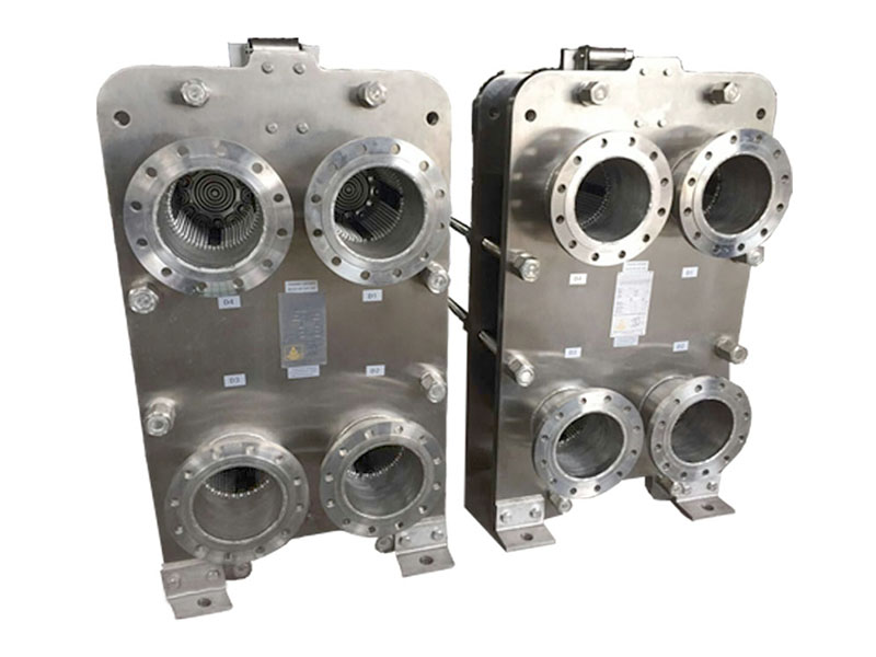 食品級板式換熱器也可作為多段式解決方案,可將多個換熱器合并成一個單獨(dú)的安裝,并由中間隔板分開。